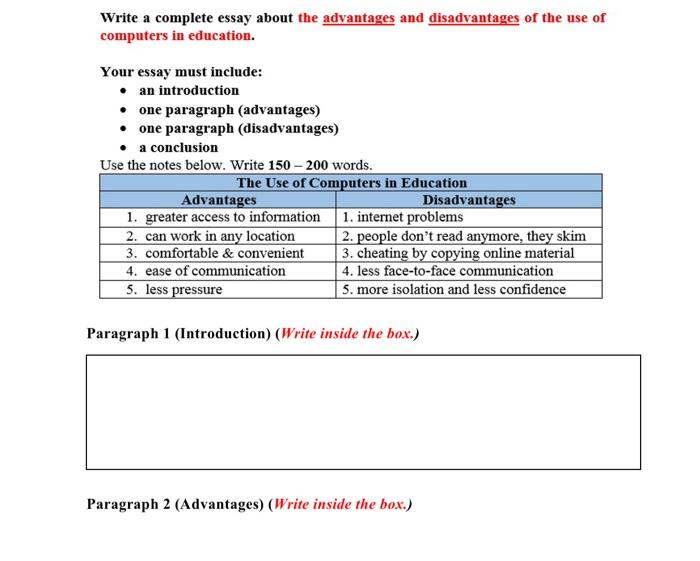 Solved Write A Complete Essay About The Advantages And Chegg Com
